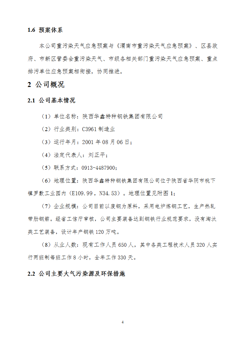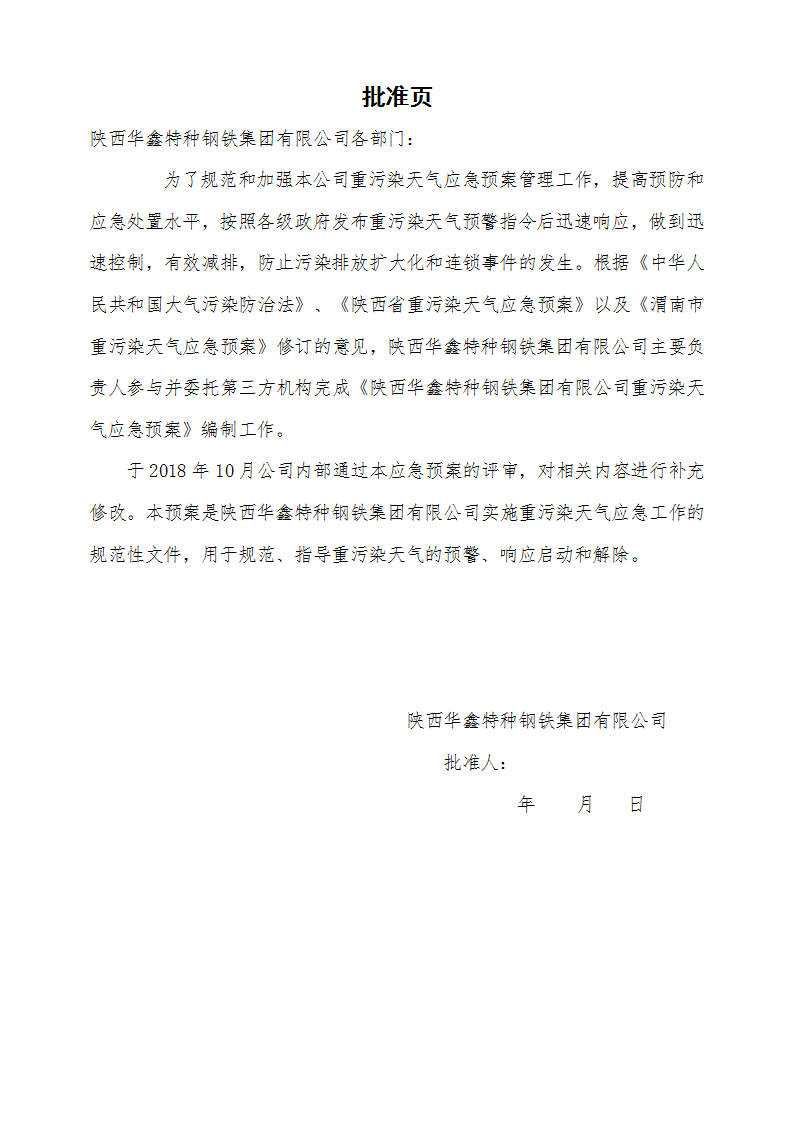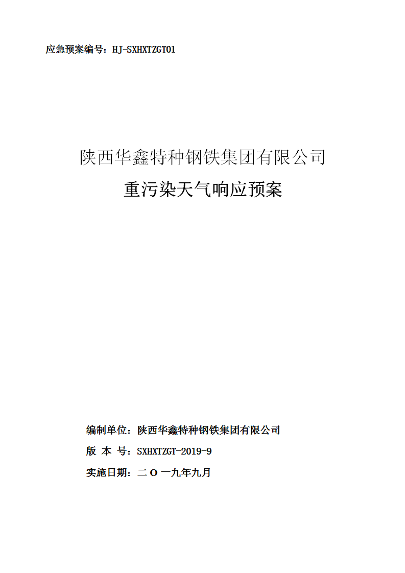 陜西華鑫特種鋼鐵集團有限公司 重污染天氣響應預案